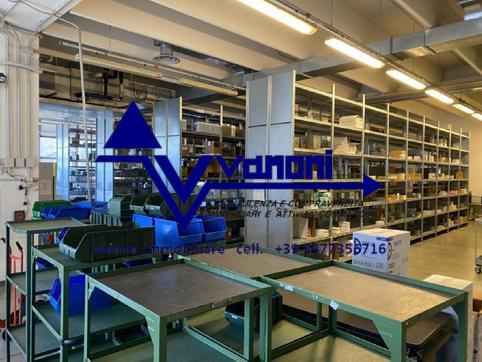 La struttura in prefabbricati tinteggiati ha ampie aperture con serramenti in alluminio su tutti i lati. La consistenza degli immobili si compone di una parte ad uso uffici ed una ad uso deposito con comodo accesso sia su lato sud con parcheggio pubblico che su lato nord da cortile comune. I due piani che costituiscono la proprietà della fallita hanno sia collegamento interno con scala e ascensore, che carrale con passaggio sulla rampa di lato ovest, bene comune non censibile con altre unità immobiliari. La porzione uffici, parte del solo subalterno 702, comprende un ampio ingresso/reception oltre a servizi igienici e vani ufficio a piano terra e un open space, vani ufficio, servizi igienici, sala riunioni e laboratorio a piano primo. La porzione adibita a magazzino e smistamento acquisti, oltre a servizi, spogliatoi e mensa, è in parte del subalterno 701 e in parte del 702 con divisione interna tra le unità immobiliari in muratura. I subalterni sono comunicanti con apertura con porta REI. Tutti i locali sono interamente pavimentati in calcestruzzo lisciato fatta eccezione per i servizi igienici pavimentati in piastrelle. Gli impianti sono a soffitto, per la parte amministrativo/direzionale inseriti in controsoffittatura. Su lato ovest un’area esclusiva coperta, ricavata sotto la rampa che porta a piano primo. Lo scrivente segnala che nella parte direzionale sia a piano terra che a piano primo ci sono tavolati non rappresentati né nei titoli edilizi abitativi né sulla scheda catastale.